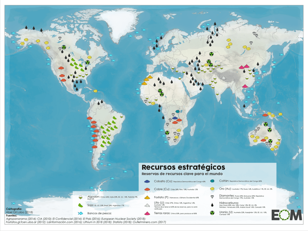 En el actual paradigma del Tecnoceno, las crisis económicas y sociales no son casualidad; coinciden con la ubicación de recursos estratégicos como el litio y el agua, situados en el Sur Global. (Fuente: https://elordenmundial.com/)